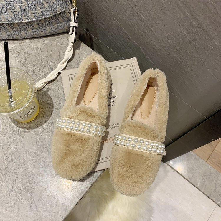 【ファー付きフラットシューズ】上質なラビットファー 柔らかい 可愛 保温 通気 お肌にやさしい